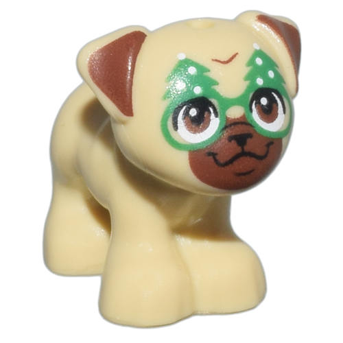 LEGO Animal Friends Christmas Tan Pug Dog with Brown Face and Christmas Tree Glasses Minifigure