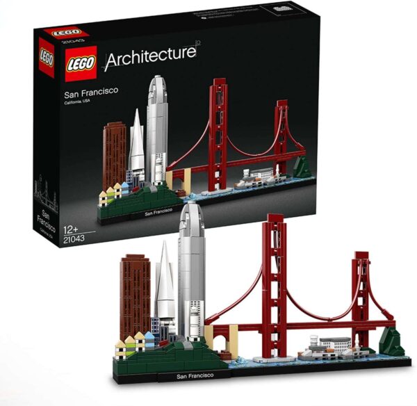 Recreate the magnificence of San Francisco’s architecture with this awesome 21043 LEGO® Architecture Skyline Collection model. This LEGO brick collectible features iconic San Francisco attractions and landmarks, including the city’s famous “painted ladies” buildings, 555 California Street, the Transamerica Pyramid, Salesforce Tower, Coit Tower, Fort Point, Golden Gate Bridge and Alcatraz Island. A blue-tiled baseplate representing the Golden Gate strait and a San Francisco nameplate add the finishing touch to this amazing model. LEGO Architecture Skyline Collection models are perfect for display in the home or office and have been developed for all with an interest in travel, architectural culture, history and design. Each skyline building set is scaled to give an accurate representation of the comparative size of the featured structures, with realistic color depiction.