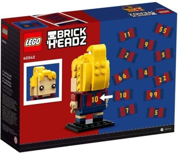 Become an FC Barcelona player in LEGO BrickHeadz form! – Kids aged 10 and over can create a model of themselves wearing the kit of one of the world’s biggest football clubs! Customisable model – Kids can choose from 3 different skin tones, 4 different hair colours and many different hairstyles. They can also select the number on their jersey from 2 sticker sheets. Play and display – The model stands over 8 cm (3 in.) tall and comes with a small goal and a football for FC Barcelona fans to enjoy extra fun.