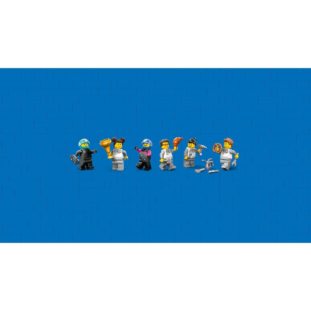 Aside from the F1 garage and cars, this LEGO City playset also includes four minifigures representing race car drivers and pit crew members. With their unique racing suits and helmets, these minifigures add an extra layer of realism to the play experience. Kids can role-play as the drivers, pit crew members, or even the TV reporters, making for endless storytelling possibilities.