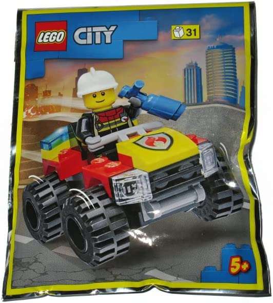 LEGO City Promotional Item Firefighter Freddy Fresh’s Quad Bike. Contains 27 parts and 1 Minifigure. Packaged in factory-sealed foil bag. Minifigure Approx. 45mm x 15mm x 5mm