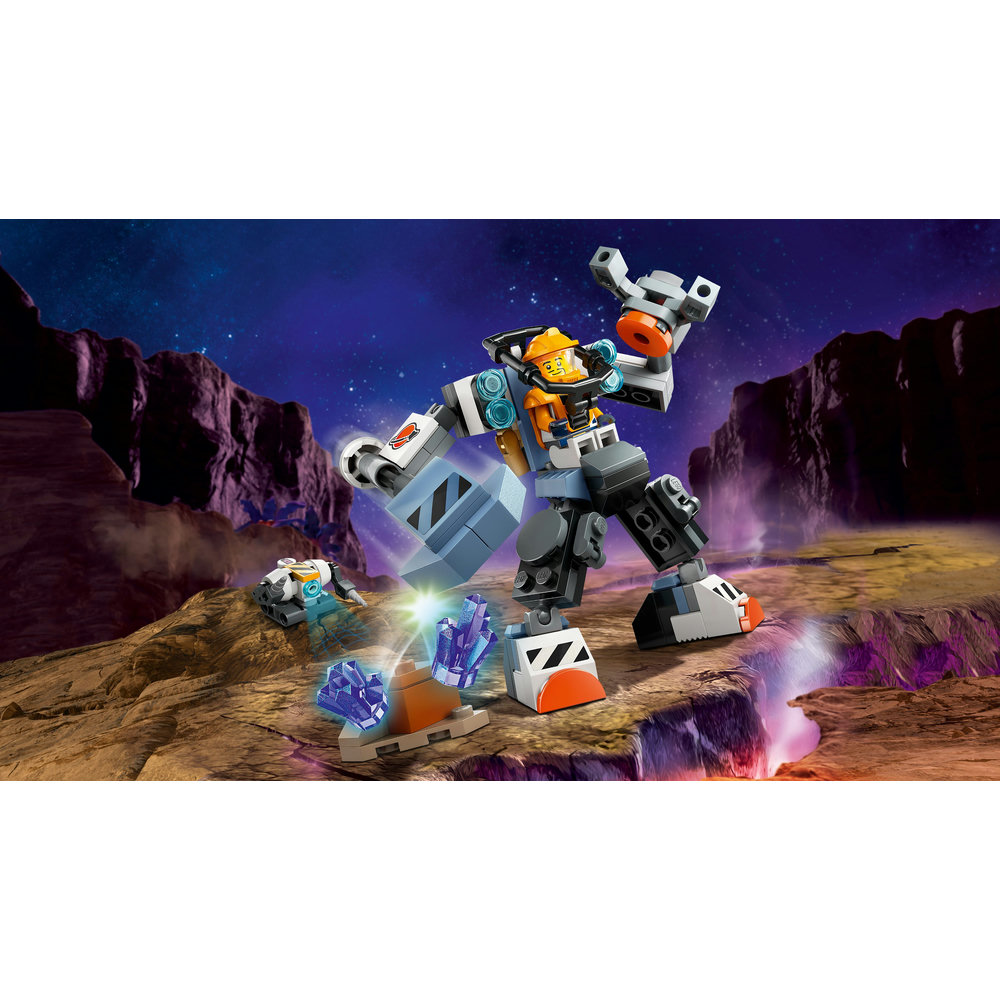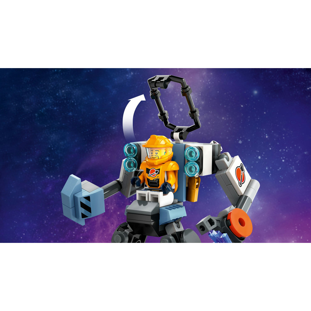 LEGO City space playset, featuring a toy mech suit and space crew minifigure