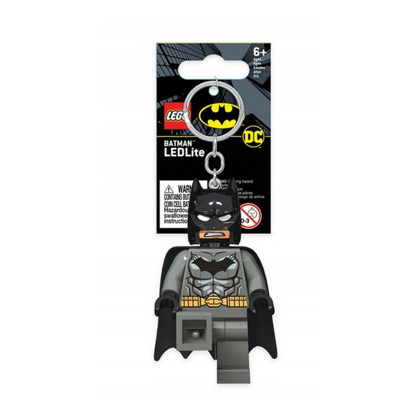 Unleash your inner superhero with this Batman keyring, featuring a light-up LEGO minifigure in his iconic grey suit