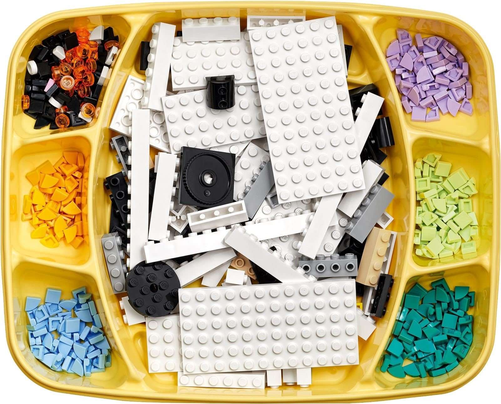 Open-ended self-expression with this useful room decor kit! Know a crafts fan aged 6 and up who loves pandas? They can explore both passions with this fun LEGO® DOTS Cute Panda Tray (41959) kit! This creative set features a large lower tray for the body and a smaller upper box for the head, which opens and turns. Both are designed to hold treasures big or small. Assembly is an easy and intuitive process, so kids can design their own panda tray and make it uniquely theirs to suit their room, passion or mood. DOTS sets introduce kids tothe joy of LEGO play and creativity as they make and decorate the different sets. Anything goes with this cute and useful panda tray because the magic and control lie in a child’s imagination. DOTS sets are packed with possibilities to inspire imaginative play for creative kids.