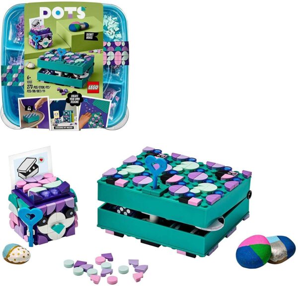 Unlock creativity for crafts-loving kids with this cool LEGO DOTS Secret Boxes (41925) kit! Made for quick assembly, this set gives boys and girls the chance to create and decorate their own lockable secret boxes with space for their special treasures, and redesign them over and over. The enclosed storage tray with lid makes cleanup and sorting a breeze.