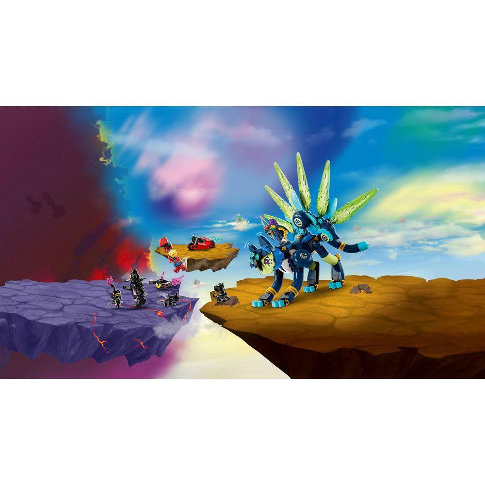 Help LEGO DREAMZzz hero Zoey save her sidekick Zian from the villainous Night Hunter! Build Zian as a speedy Cat-Owl with wings or a Cat-Peacock with a beautiful tail. In Cat-Owl mode he can fly away from the nightmare creatures, and in Cat-Peacock mode he can fight them off! Will Zoey come to the rescue? Only you can decide…