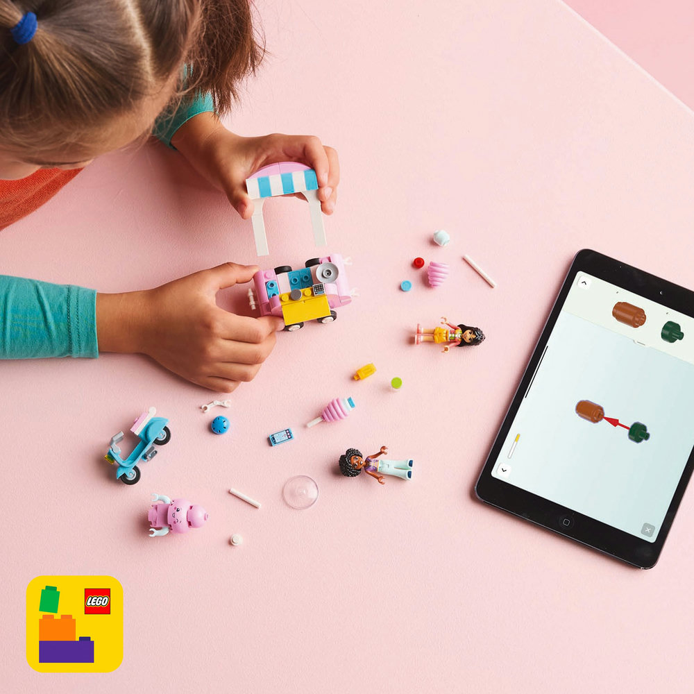 Girls, boys and any little builder who loves creative play can have fun making up their own stories with this set. It tells the story of Liann and Jamila, who enjoy spending time together at the candyfloss food stand. The LEGO vehicle tows the wheelable cart, which comes with a bowl and toppings to create the candyfloss delights. There’s also a cash register and money accessories so kids can role-play different customer interactions.