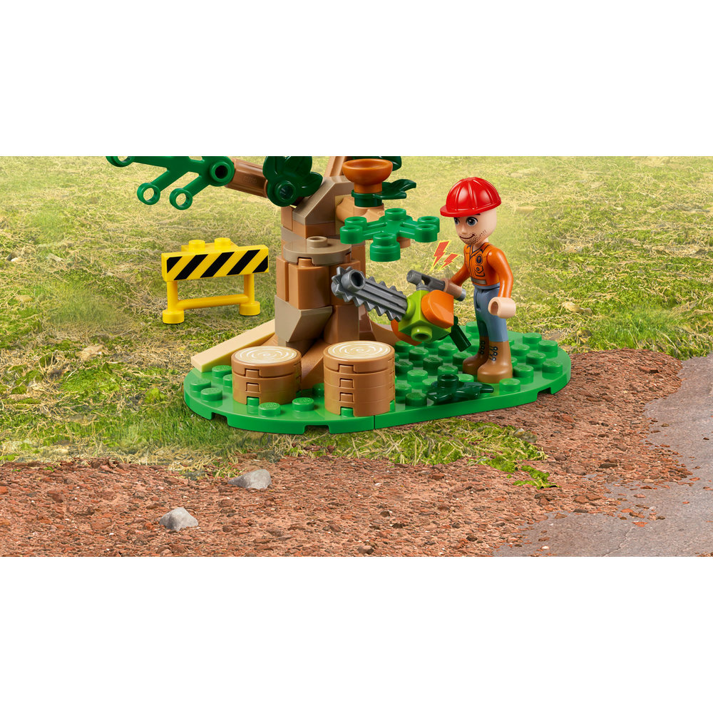 3 characters and accessories – The set comes with LEGO Friends characters Aliya, Peter the logger, and Darrel, who is protesting about the tree being cut down