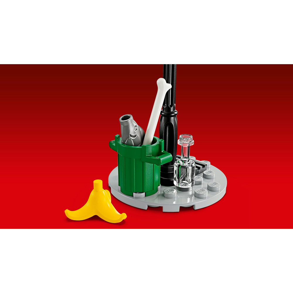 Accessories include a rubbish bin, bottle, fish, bone, banana peel and dynamite