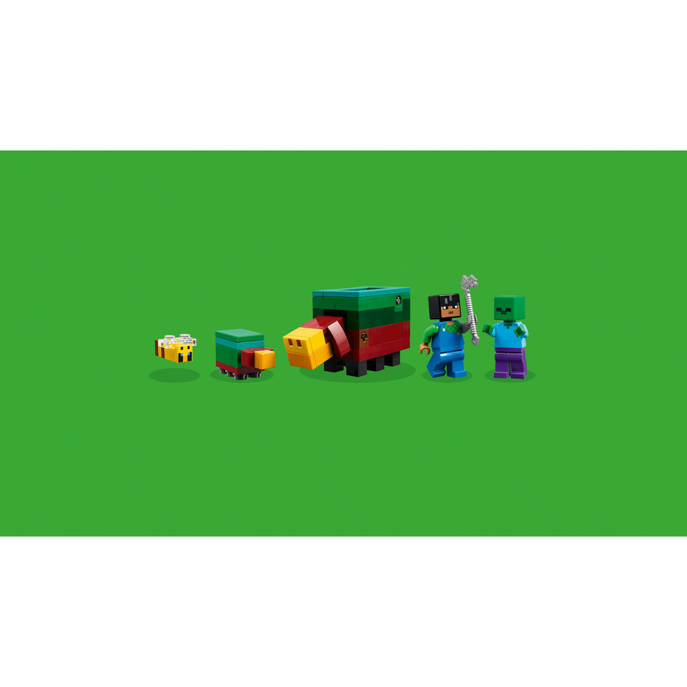 This is the first LEGO Minecraft playset to feature hero character Sunny. Kids help Sunny tend the cherry blossom garden toy, which contains 2 brightly coloured trees, a small bridge over a stream and a sand garden with a decorative pot and blackstone rock. There are 2 bees, an adult sniffer – a friendly mob from the game – and a baby sniffer and a sniffer egg. Kids use the adult sniffer’s finger-operated sniffing function to dig a rare seed out of the ground with its snout. For added battle action, there’s a hostile zombie to fend off in the garden. There’s digital fun too when builders use the intuitive LEGO Builder app.