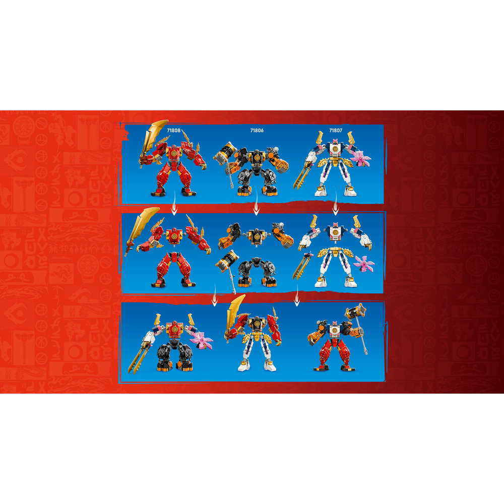This customisable mech also lets kids build their own mech! Its detachable legs, arms and torso can be combined with parts from 2 other mechs: Cole’s Elemental Earth Mech (71806) and Sora’s Elemental Tech Mech (71807) (sold separately). Kids can enjoy endless fun as they mix and match parts to create a unique action figure toy.