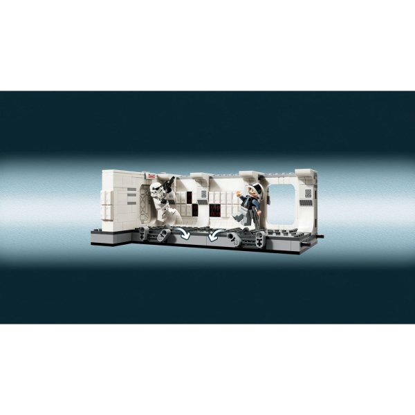 This LEGO Star Wars Boarding the Tantive IV diorama captures the tension and excitement of the film’s opening moments. The set expertly recreates a section of the Rebel blockade runner’s iconic white corridor, complete with the aftermath of Imperial forces blasting their way in.